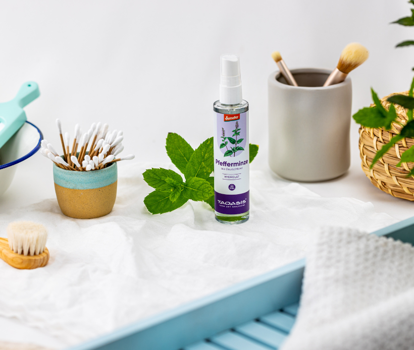 Pflanzenwasser ist dabei der wasserlösliche und die Essenz der öllösliche Teil. Anders als ätherische Öle, die hochkonzentriert sind, enthalten Hydrolate nur einen geringen Anteil an ätherischen Ölen, was sie wesentlich milder und oft auch hautfreundlicher macht.