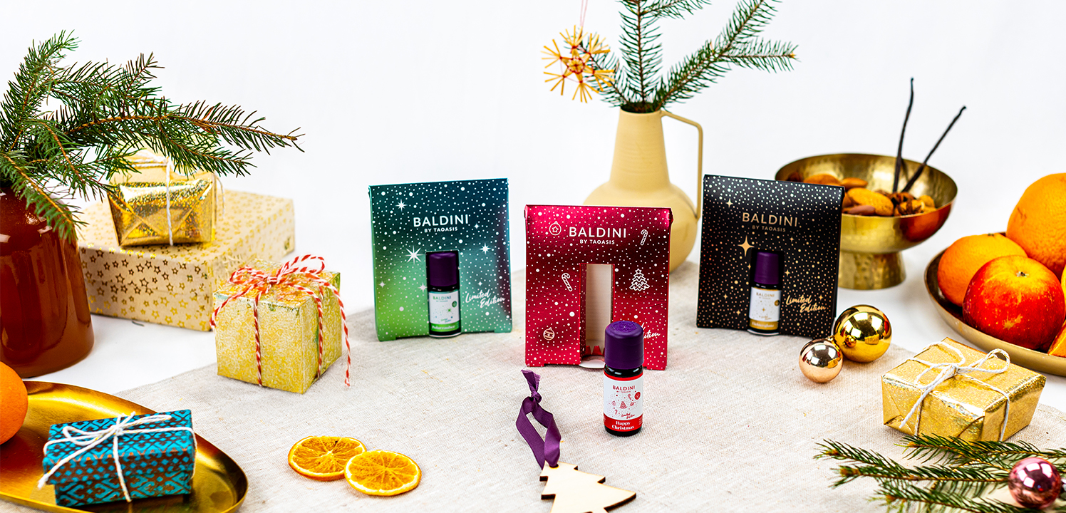 Übrigens auch gut als Weihnachtsgeschenk geeignet, um Bekannten und Freund:innen die Vorzüge der Aromatherapie näherzubringen. Das Beste daran ist: Du kannst sofort nach der Bestellung mit deiner Aromatherapie loslegen! Denn viele unserer TAOASIS oder Baldini Geschenksets bestehen aus einem oder mehreren ätherischen Ölen inklusive einem Duftträger. Ein ideales Starterpaket, um Körper und Geist in Schwung zu bringen.