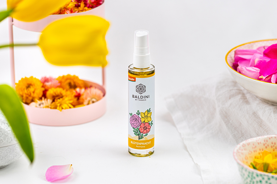 Hol dir den Duft frischer Blüten nach Hause. Das neue Raumspray Blütenpracht mit Ylang Ylang, Rose und Lindenblüte bringt eine sanfte, blumige Stimmung in deine vier Wände. Der Duft sorgt für eine entspannte Atmosphäre, hebt die Laune und fühlt sich an wie ein tiefer Atemzug im blühenden Sommergarten. Ob am Morgen für einen guten Start oder abends zum Runterkommen, ein paar Sprühstöße reichen, um sich rundum wohlzufühlen. Lass dich umhüllen von einem Hauch Sinnlichkeit und Leichtigkeit – für Momente, die nach Blüten duften und einfach gut tun.